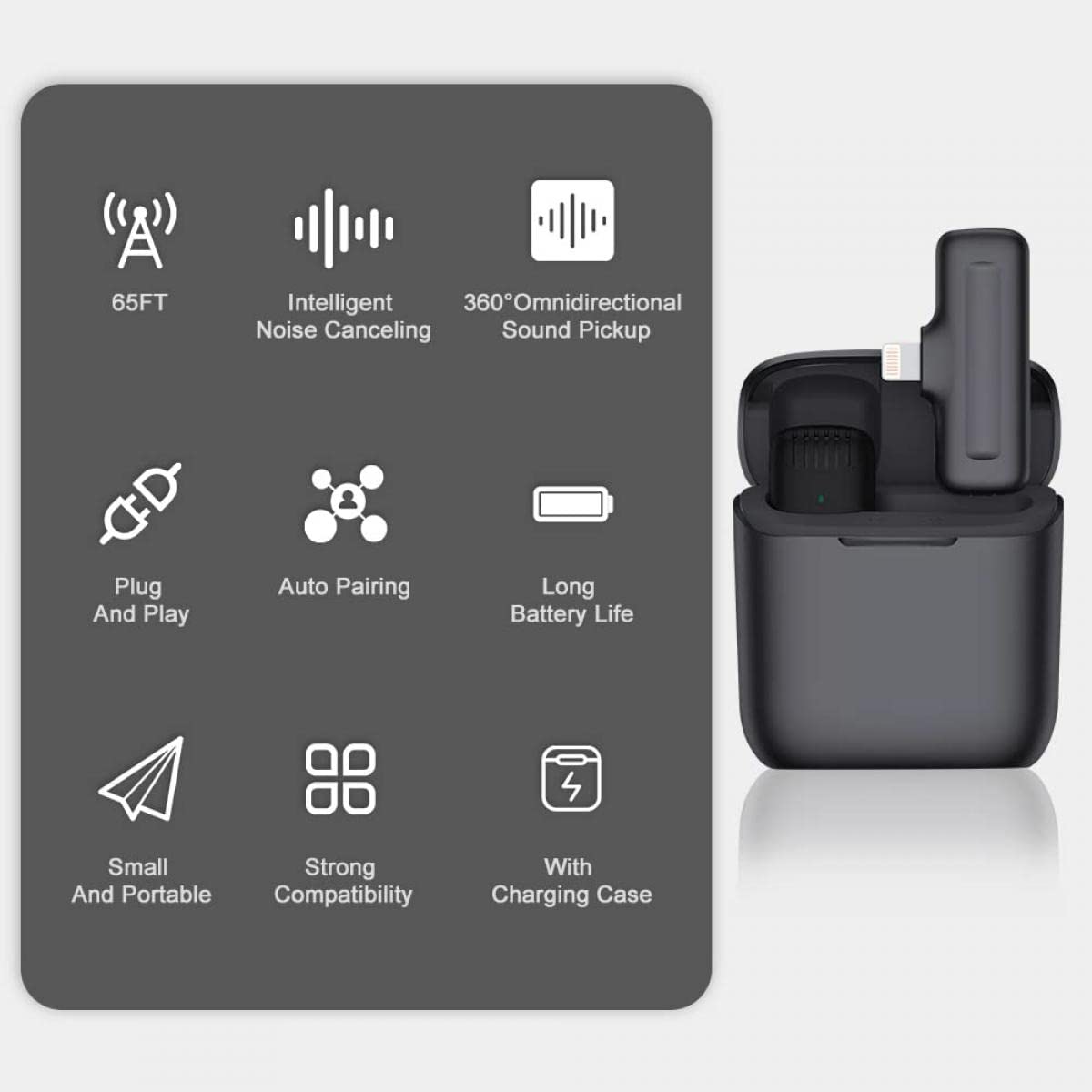 Careflection Wireless Clip Mic, Wireless Lavalier Microphones, Clip-on Microphone(Aisizo, for Smartphone, Laptop, Video Recording YouTube Live Stream (J11 Microphone Lightening Type)