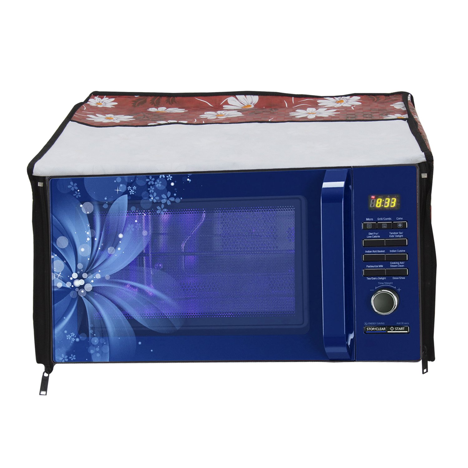 It Covers Your Microwave oven from all four sides To protect it from unwanted Particles and Dust.This protects your oven surface from scratches, dust, stains and other particles. This has two zipper enclosures at front side. The design and look is elegant and very attractive which increase the beauty of your kitchen interior.