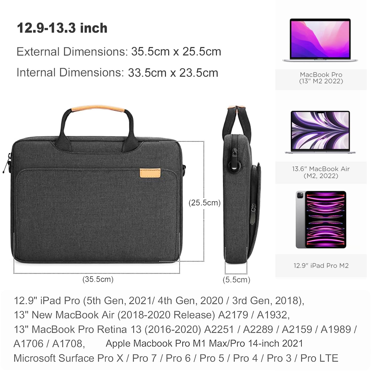 MOCA 360° Protective Laptop Shoulder Bag Sleeve Case for 13 inch New MacBook Pro M2/M1 2022-2012, 13 Inch New MacBook Air M2/M1 2022-2010, Surface Book 3 2, 13″ HP Acer ASUS Lenovo