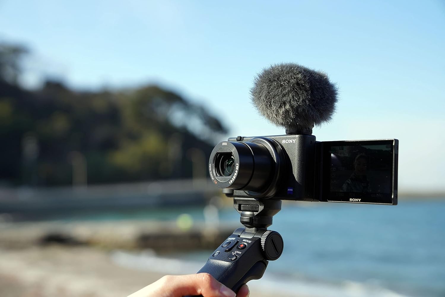 ZV 1 Vlog camera bundled with 1 unit Bluetooth Shooting grip, 1 additional unit Rechargeable battery and 1 unit SD Card.;20.1 MP stacked back illuminated 1″ Exmor RS CMOS sensor / DRAM, Large aperture 24-70mm 1 F1.8-2.8 ZEISS Vario-Sonnar T lens