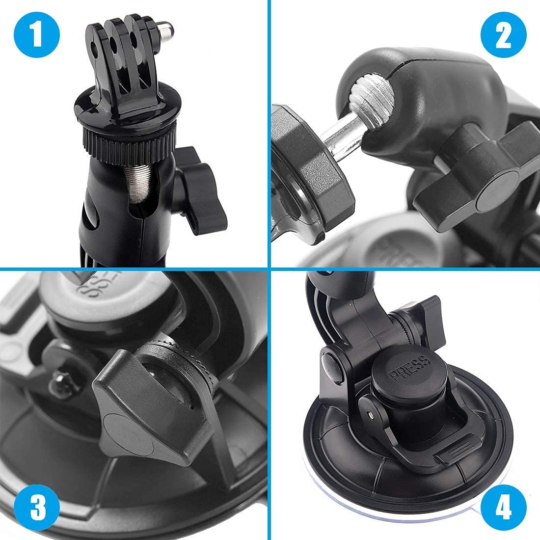 Sturdy and Steady Design: Engineered for stability, the heavy-duty 3.6-inch suction cup provides a robust grip on various surfaces, including car windshields, doors, motorcycle tanks, and other smooth surfaces like metal, plastic, and glass. The firm suction force ensures your camera stays steady, even during high-speed activities.